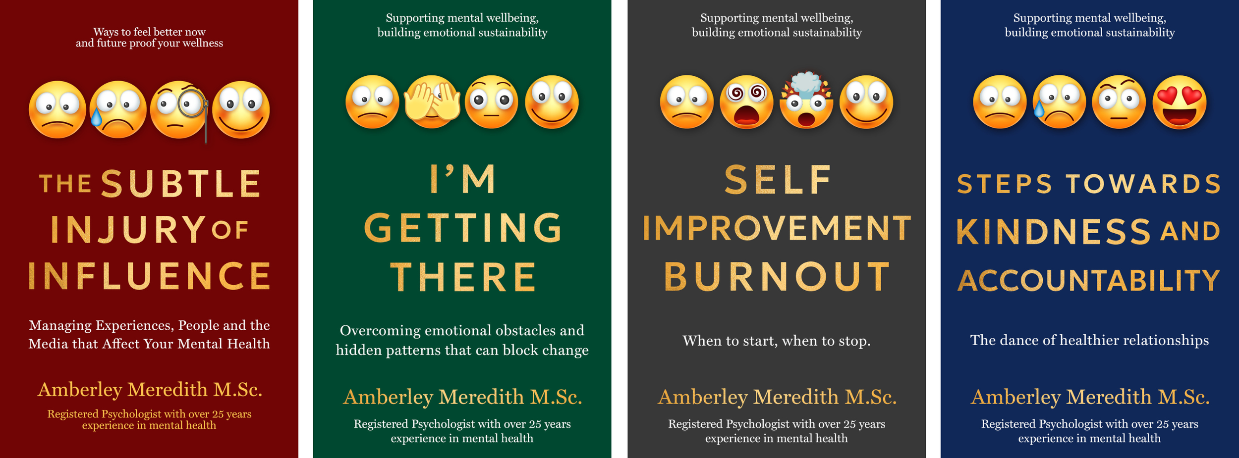 These books are written by Amberley Meredith, a registered psychologist with decades of experience supporting people through stress, burnout, and change.